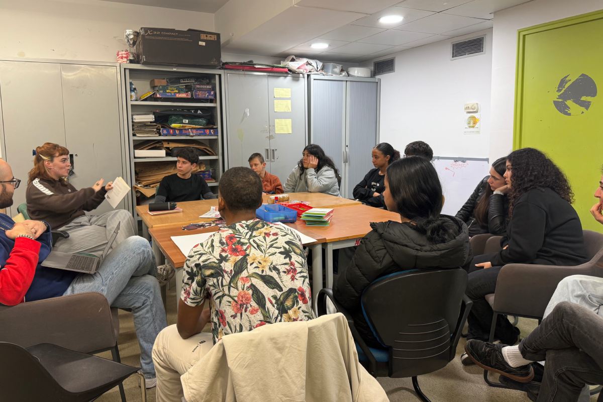 A l’adolescència, el cos és una matèria en transformació constant. Per aquest motiu, és molt important que els i les joves disposin d’espais on poder parlar sobre com els impacten les paraules i les mirades dels altres, així com els seus propis judicis, “Les coses que ens passen ens afecten al cos, tant de manera directa com de manera indirecta”, afirma Laia Mauri Baraza, autora del llibre Cos, camp de batalla (La Magrana). L’escriptora va dinamitzar el passat 11 de desembre un taller amb 10 adolescents del Kasal de Joves de Roquetes, com a part del programa de ‘La Petita Prestatgeria’, el cicle d’activitats socioculturals per a infants i joves del Social.cat, i en el marc del projecte Ocell de Foc als districtes barcelonins de Nou Barris, Gràcia i Sant Andreu.
